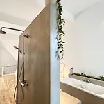 V tomto apartmánu máte k dispozici samostatnou toaletu, vanu a sprchu.
